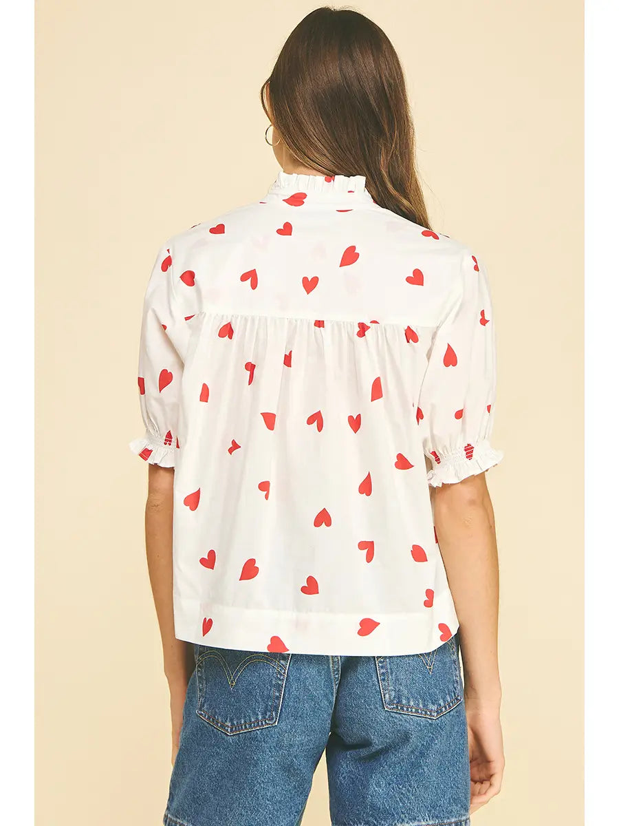 V-neck Balloon short sleeve Ruffled neck and cuff Model wears a size small