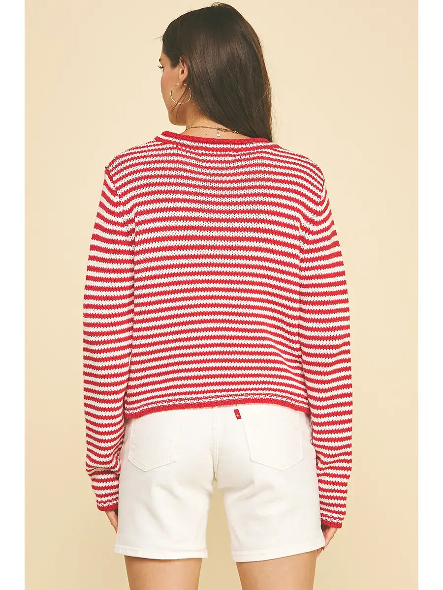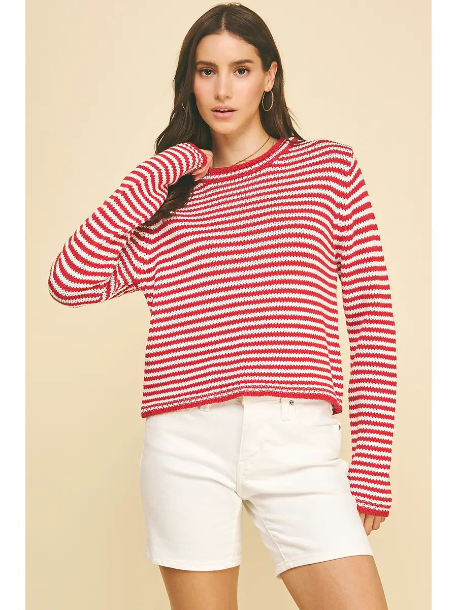 Crew neck Striped sweater Long sleeve; cotton acrylic